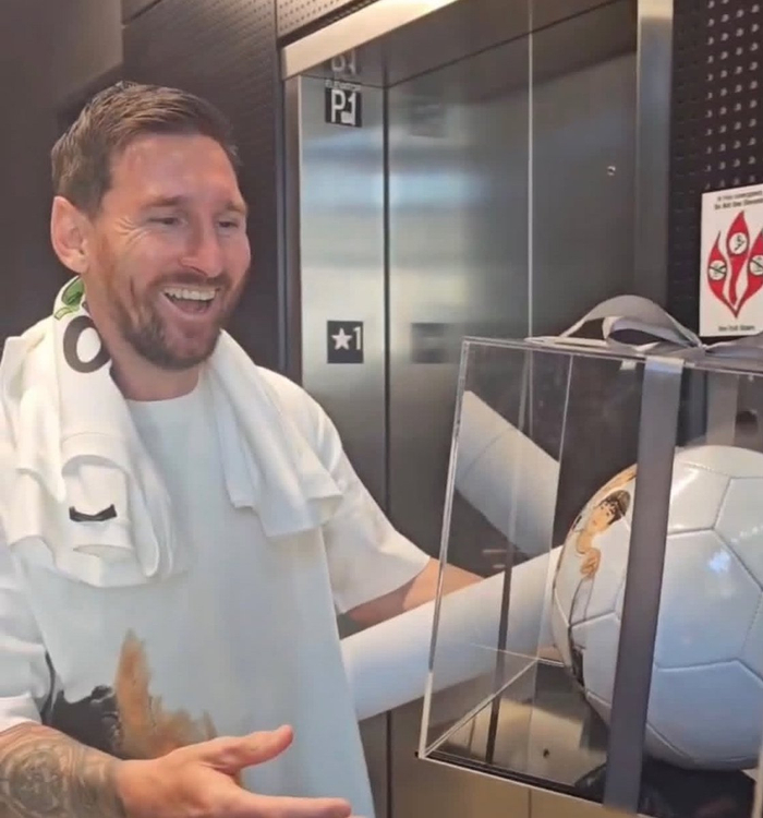 梅西看到足球上印着家人照片时的反应! 😍#足球##美职联#