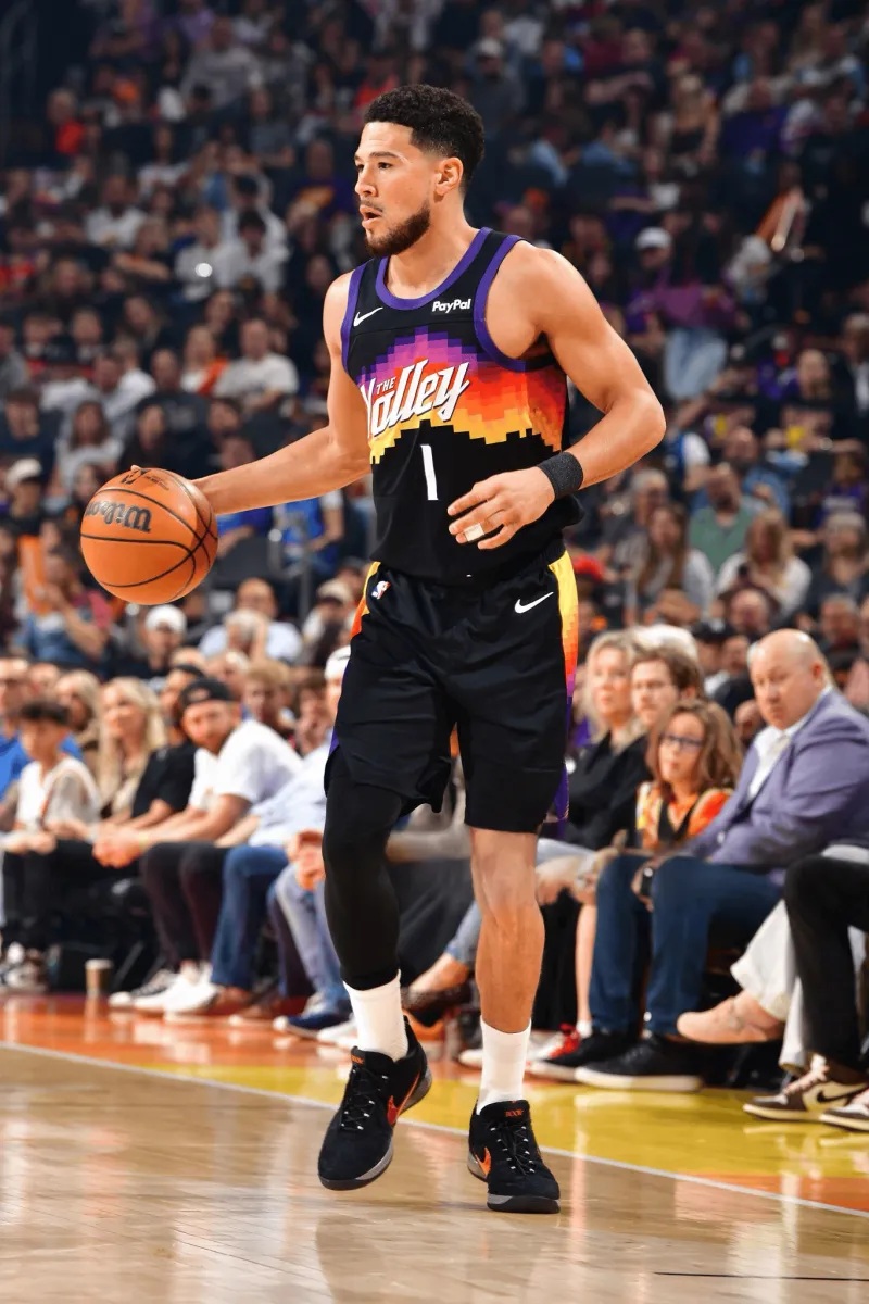 虎扑04月09日讯 今日NBA常规赛太阳112-107战胜独行侠。本场比赛,太阳队球员德文-布克出战37分钟,投篮27中13,三分球6中2,罚球9中9,得到37分5篮板9助攻。比赛中,布克上脚Nike BOOK2“Bad Boy”PE,配色灵感来自布克家乡球队—底特律活塞坏孩子军团。来源:Getty Images虎扑04月09日讯 今日NBA常规赛太阳112...