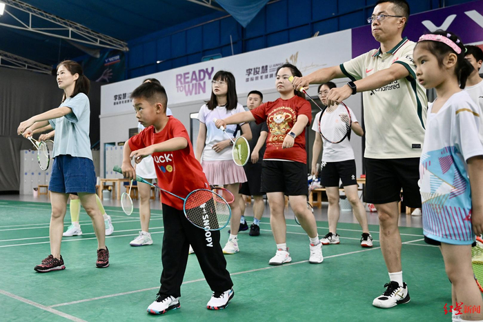 ▲市民练习羽毛球